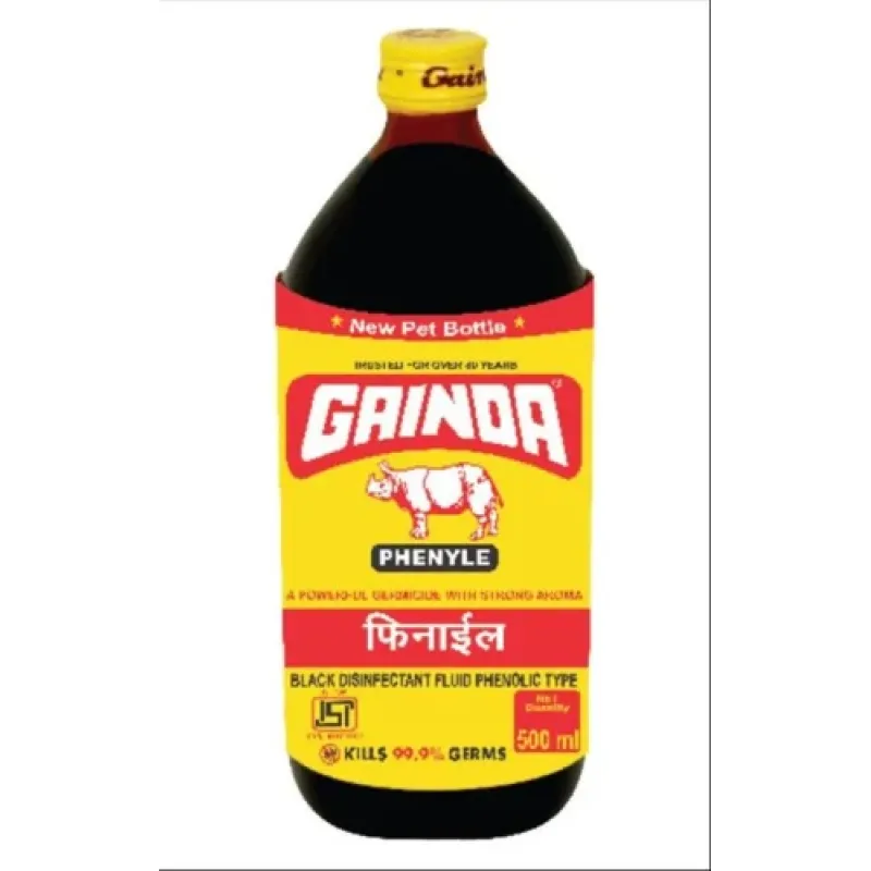 Gainda Black Phenyle 500ml is a powerful disinfectant designed to keep your surroundings clean and germ-free. Formulated with coal tar acid and phenolic compounds, it effectively eliminates 99.9% of germs, bacteria, and viruses. This versatile cleaner is ideal for use in homes, hospitals, offices, schools, and other institutions. Its strong aroma ensures a fresh and hygienic environment. To use, dilute the phenyle with water in a ratio of 1:50 to 1:100, and apply to floors, drains, and other surfaces using a mop or cloth. It can also be used undiluted for spot cleaning. Gainda Black Phenyle is free from ammonia and mercuric compounds, making it safe for regular use.
