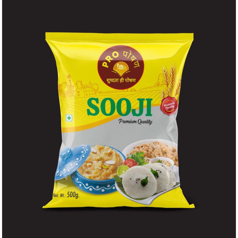 Pro Poshan Sooji (also known as Rava) is a 500g package of organic whole wheat sooji. It's made from certified organic wheat and is a good source of fiber, iron, and antioxidants. It can be used in various dishes like upma, halwa, and idlis.